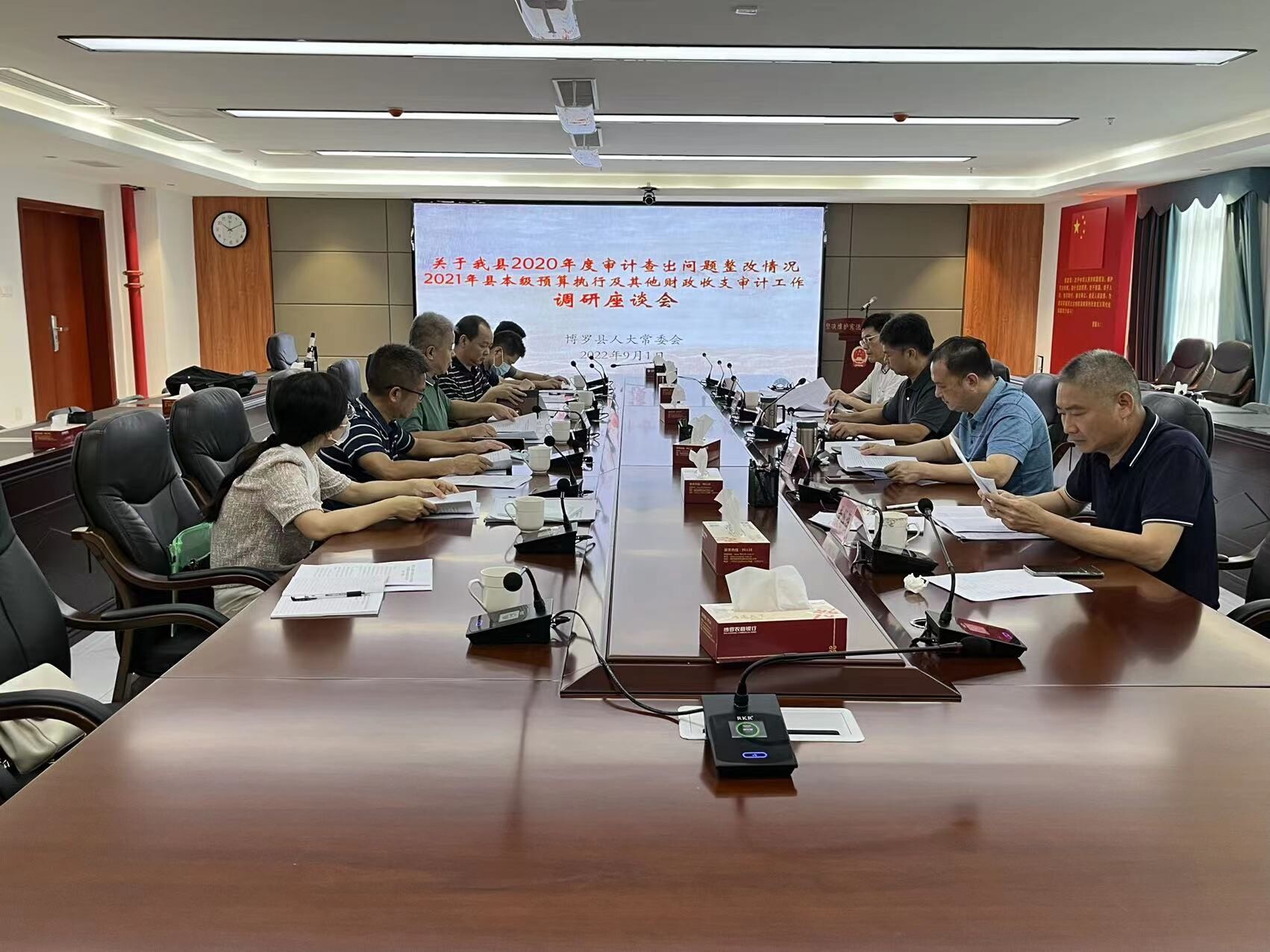 2022年9月1日,博羅縣人大常委會召開關于我縣2020年度審計查出問題整改情況和2021年縣本級預算執行及其他財政收支審計工作調研座談會,縣人大常委會副主任朱瑞明及財工委調研工作組成員,縣審計局黨組書記、局長陳可和黨組成員、總審計師陳小雷及有關業務人員參加了會議。