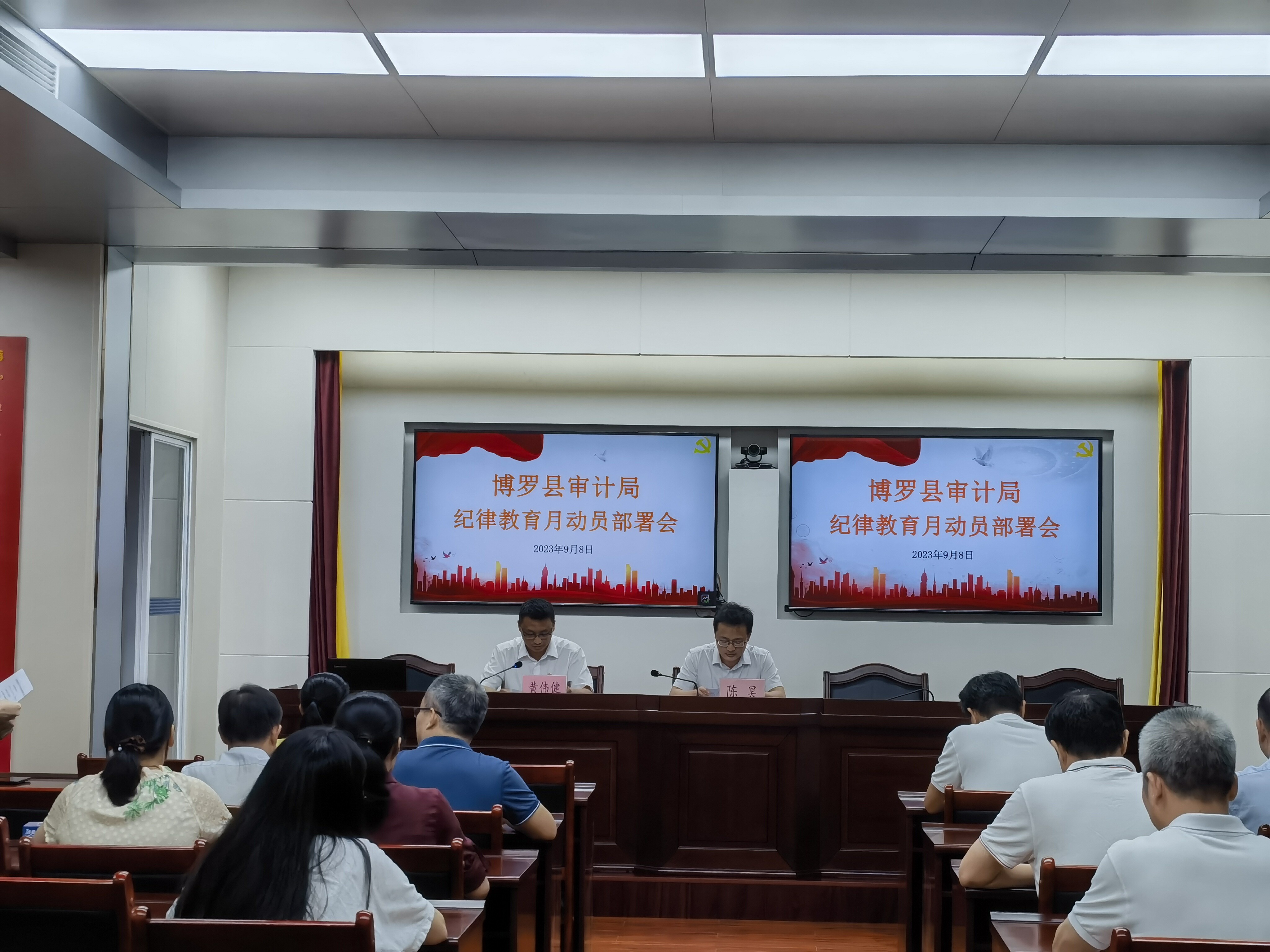 2023年9月8日,博羅縣審計局召開紀律教育月動員部署會,局黨組書記、局長陳昊同志作動員部署講話。會議由局黨組成員、副局長黃偉健同志主持,全體黨員干部職工參加會議。
