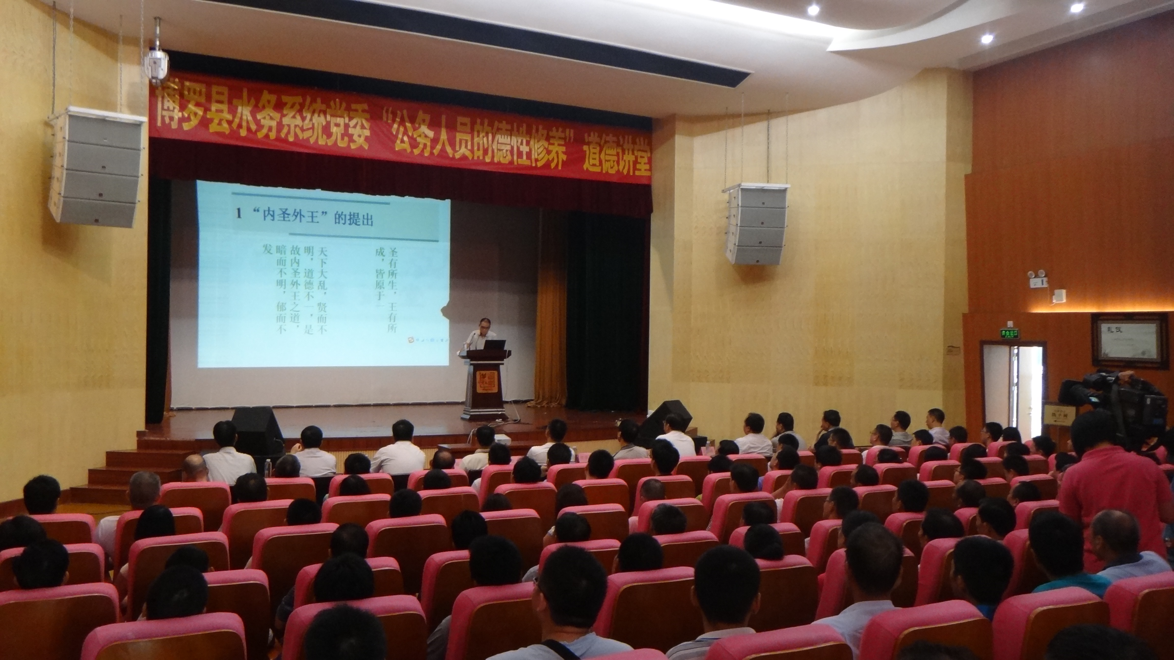 為進(jìn)一步推進(jìn)水務(wù)系統(tǒng)道德文化建設(shè),提升全體水務(wù)干部職工道德修養(yǎng),2014年7月24日上午,我局舉辦了以“內(nèi)圣外王與公務(wù)人員的德性修養(yǎng)”為主題的道德講堂宣講活動(dòng),水務(wù)局機(jī)關(guān)全體干部職工和各基層水管單位負(fù)責(zé)人及職工代表近170人參加了此次活動(dòng)。