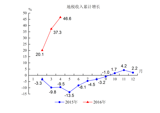 今年以來,地稅收入增幅逐月提高。1-4月,全縣地稅收入完成10.35億元,增長46.6%,與1-3月和1-2月相比,增幅分別提高9.3個和26.5個百分點。分產業看,地稅第一、第二、第三產業收入分別增長7.7%、55.1%和39.1%。第二產業收入增長主要源于建筑業收入增長150.1%;第三產業收入增長原因在于,十四個行業門類中,除了租賃和商務服務業、科學研究和技術服務業、教育業收入負增長及公共管理、社會保障和社會組織收入個位數增長外,其余十個行業增速在20%以上;其中,房地產業收入占第三產業收入比重達49%,收入增長28.6%,拉動第三產業收入增長15.2個百分點。