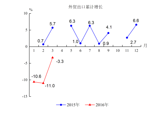 11.外貿出口總額(1-3月)30.36億元,下降3.3%。