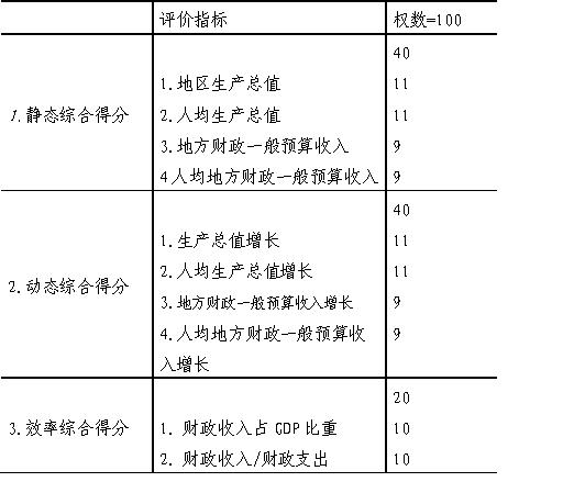 其中是觀測值, 指同一指標的最小觀測值, 是同一指標的最大觀測值, 是同一指標從大到小排列位次。按權數計算得分加總后得到各縣綜合評價得分。(各縣市經濟發展水平評價結果及排位見附表)