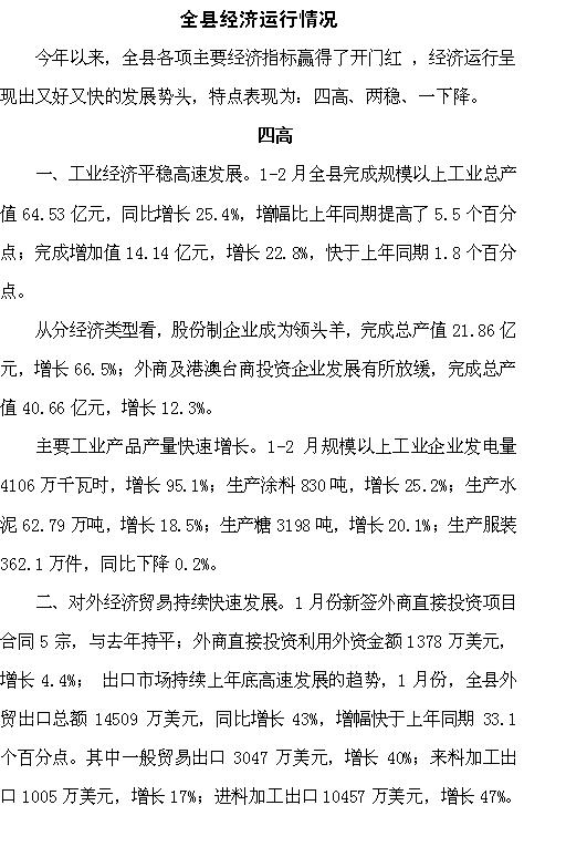 2011年2月份全縣經濟運行情況