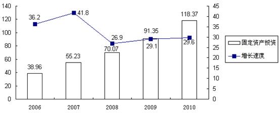 表3:2006-2010年固定資產(chǎn)投資及增幅