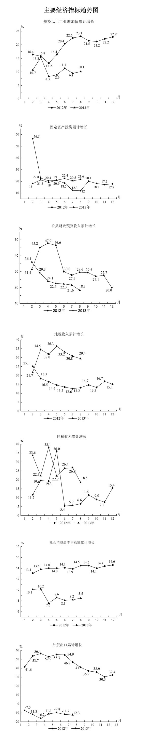 二、固定資產投資持續高位增長。1-8月,全縣固定資產投資109.81億元,增長21.6%,比1-7月上升1.1個百分點,比上年同期上升9.6個百分點,增幅連續四個月超過20%,且均高于上年同期。其中,基礎設施投資額21.05億元,增長29.3%。分行業看,工業投資和房地產投資分別為41.87億元和41.84億元,分別增長24.3%和19.2%,兩項投資拉動整體投資增長16.5個百分點。