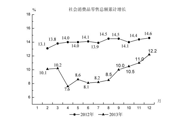(2)消費穩中有升。全縣實現社會消費品零售總額124.28億元,增長12.2%,增幅比一季度、上半年和前三季度分別提高2個、4.1個和2.2個百分點。分行業看,批發、零售、住宿和餐飲業分別增長13.3%、11.6%、17.5%和15.6%。