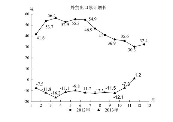 雖然歐美和日本經濟形勢有所改善,但改善程度較小,外需未見明顯好轉。國際金融危機和歐債危機所帶來的負面影響遠未消除,國際市場需求還是疲弱。2013年規模以上工業出口交貨值下降1.4%。同時,勞動力、資金、原材料、土地使用、環保等成本持續上升,以及人民幣匯率持續升值導致企業出口成本上升,產品的國際競爭力下降,一些大型出口企業及部分傳統勞動密集型出口企業將產能或訂單向內地省份或周邊國家轉移,影響企業產品的出口。