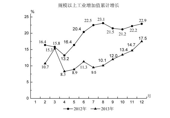 4.工業生產總體向好。2013年下半年以來,規模以上工業增加值累計增速保持逐月提高,對全縣經濟增長發揮了重要的穩定作用,全年規模以上工業累計完成增加值185.08億元,增長17.5%。其中,主導行業持續穩定增長。電氣機械和器材制造業完成增加值19.66億元,增長44.7%,增幅高出全縣規上平均水平27.2個百分點;金屬制品業完成增加值10.08億元,增長57.4%;橡膠和塑料制品業完成增加值10.05億元,增長19.9%;化學原料和化學制品制造業完成工業增加值7.77億元,增長37.3%;有色金屬冶煉和壓延加工業完成增加值1.30億元,增長33.0%。
