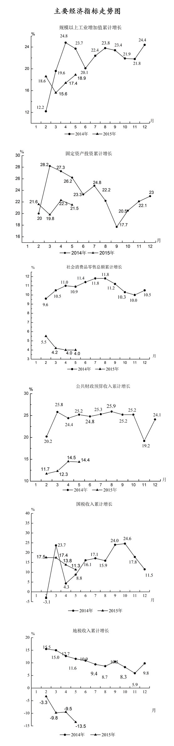 1-5月,全縣經濟持續穩定運行,其中規模以上工業增加值、基礎設施投資、商品房銷售面積及銷售額、用電量、人民幣存貸款等指標增幅比1-4月提高,固定資產投資、稅收、公共財政預算收入等指標增幅有所回落。