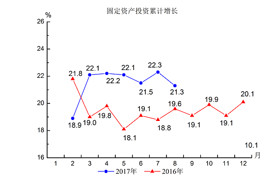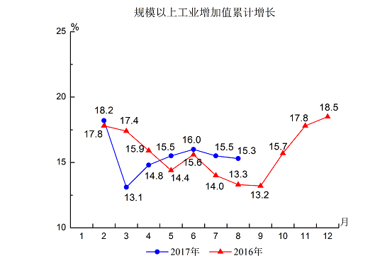 個別指標未達市下達目標。對照20171-8月市下達主要指標發展目標安排,與工作目標相比,個別指標存在不同程度差距,其中規上工業增加值增幅低于目標0.7個百分點,基礎設施投資增幅低于目標4個百分點。