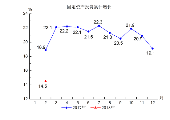 2.固定資產投資額增長14.5%,增幅比上年同期回落4.4個百分點。