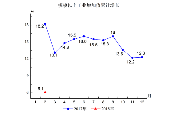 1.規模以上工業增加值增長6.1%,增幅比上年同期回落12.1個百分點。