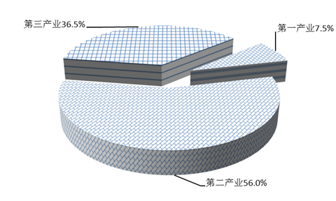 據(jù)市統(tǒng)計(jì)局初步核算,2017年全縣地區(qū)生產(chǎn)總值(GDP)680.37億元,按可比價(jià)格計(jì)算,比上年增長(zhǎng)(以下簡(jiǎn)稱(chēng)增長(zhǎng))8.3%。其中,第一、第二、第三產(chǎn)業(yè)增加值分別增長(zhǎng)3.4%、11.1%和5%,三次產(chǎn)業(yè)結(jié)構(gòu)為7.5:56:36.5。(見(jiàn)圖1)。人均GDP 63547元,增長(zhǎng)8.2%。