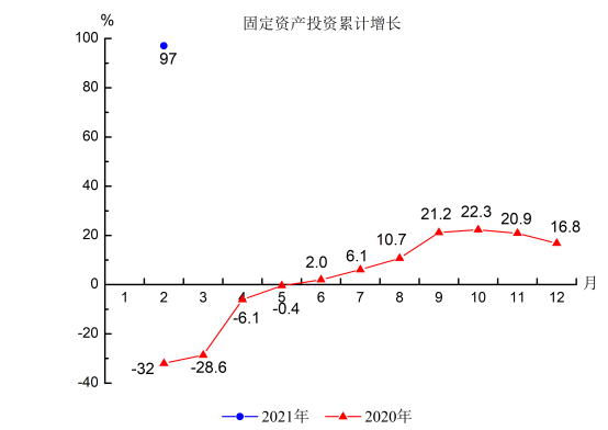 2.固定資產(chǎn)投資額同比增長97%,比2019年1-2月增長33.9%,兩年平均增速為10.1%。