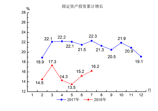 2.固定資產投資額增長16.2%,增幅比去年同期回落6.1個百分點。