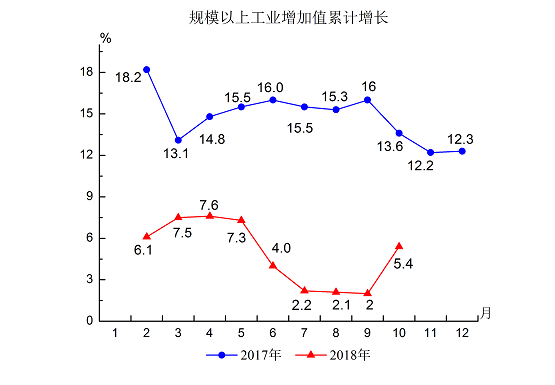 1.規(guī)模以上工業(yè)增加值增長5.4%,增幅比去年同期回落8.2個百分點。