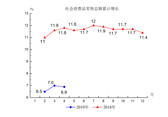 3.市場運行總體平穩,1-4月,全縣社會消費品零售總額實現72.56億元,增長6.9%,增速比1-3月回落0.1個百分點。受上年同期基數和油品類商品增速放緩影響,限上零售額低位運行,下降8.9%。零售業零售額增速回落,增長10%,增速比1-3月回落1.2個百分點;批發業、餐飲業零售額增速平穩上升,分別增長1.3%和4.6%,增速比1-3月分別提高2.3個和0.2個百分點;住宿業零售額回落,下降26.2%,降幅比1-3月擴大4.5個百分點。