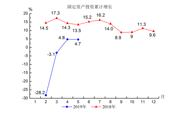 2.固定資產投資額增長4.7%,增幅比上年同期回落8.8個百分點。