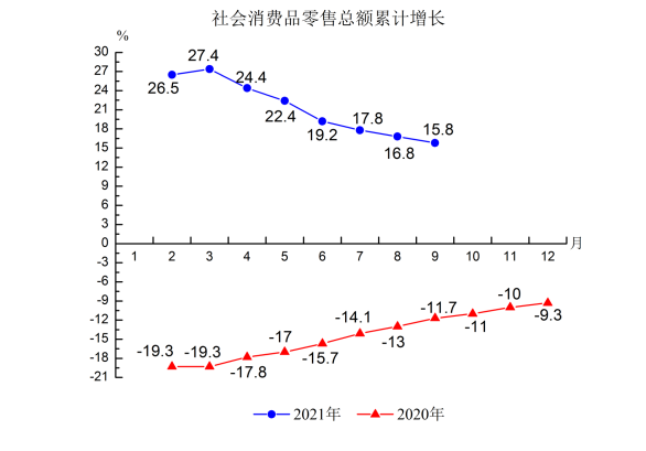 5.社會消費品零售總額237.85億元,同比增長15.8%,比2019年前三季度增長2.2%,兩年平均增長1.1%,比上半年兩年平均增速提高0.8個百分點。