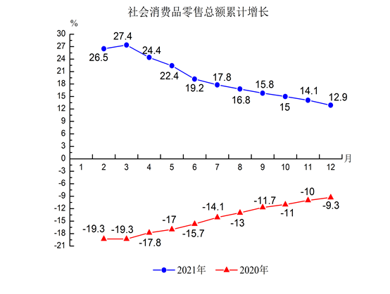 5.社會消費品零售總額321.84億元,同比增長12.9%,比2019年增長2.4%,兩年平均增長1.2%。
