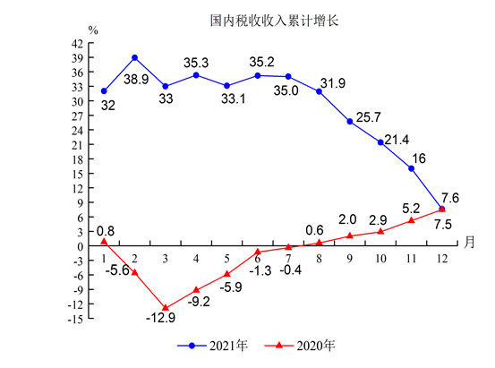 7.國內稅收收入107.93億元,同比增長7.6%,比2019年增長15.7%,兩年平均增長7.5%。