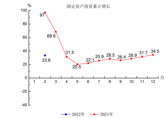 2.固定資產投資同比增長33.6%,比2021年同期兩年平均增速提高17.9個百分點;總量居第5位,增速居第1位。工業投資同比增長139.8%,比2021年同期兩年平均增速提高19個百分點;總量居第3位,增速居第2位。