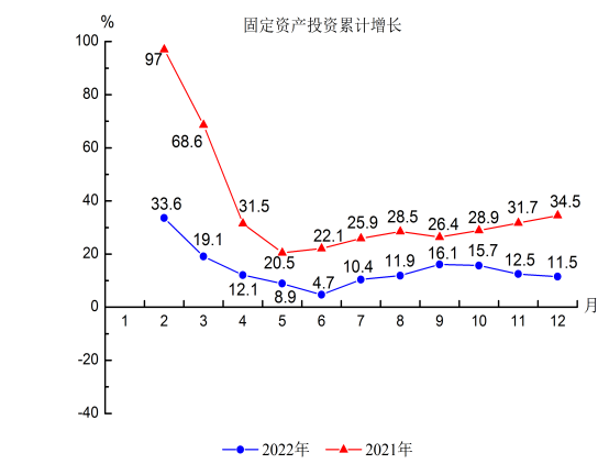2022年,全縣固定資產投資保持穩定運行態勢。自7月份以來,增速保持兩位數增長,全年固定資產投資額增長11.5%,增速比上半年、前三季度分別提高6.8個、回落4.6個百分點。其中,全年建設項目投資增長27.6%;房地產開發投資下降12.2%。