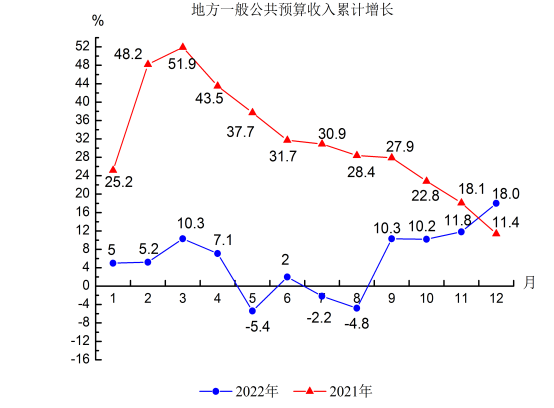 備注:圖中一般公共預算收入累計增速按照自然口徑計算;按照扣除留抵退因素后的可比口徑計算,1-12月一般公共預算收入累計增長26.3%。