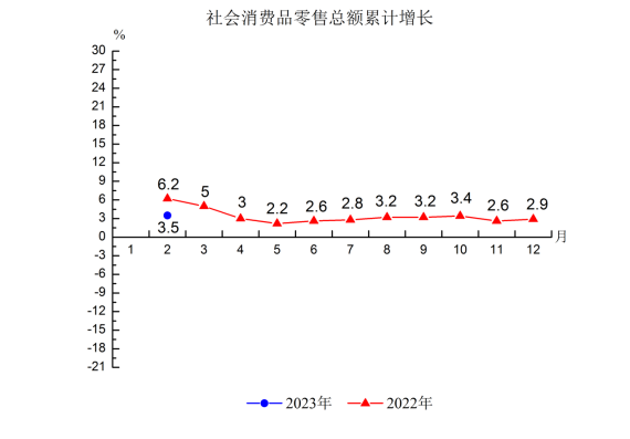 3.社會消費品零售總額56.59億元,增長3.5%,比2022年12月份放緩3.2個百分點,總量居第3位,增速居第6位;兩年平均增長4.8%。