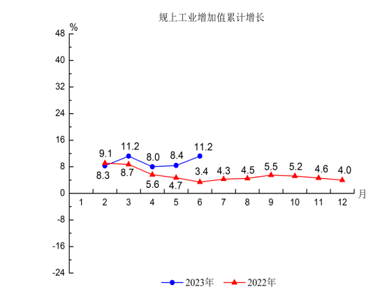 4.規(guī)模以上工業(yè)總產(chǎn)值增長9.2%,比一季度提高0.8個百分點,總量居第4位,增速居第2位。規(guī)模以上工業(yè)增加值增長11.2%,與一季度持平,總量居第4位,增速居第2位。