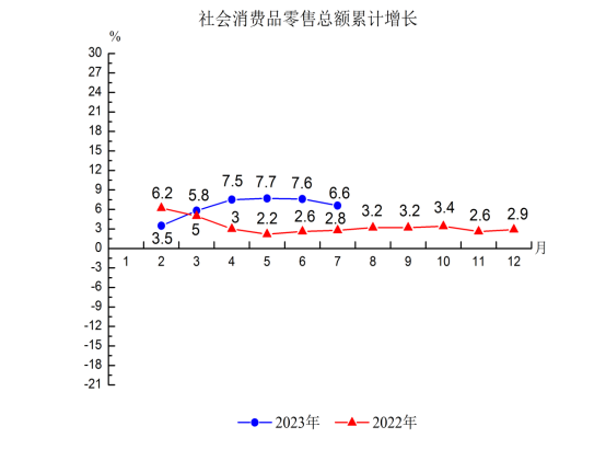 3.社會消費品零售總額199.2億元,增長6.6%,比1-6月回落1個百分點,總量、增速均居第3位。