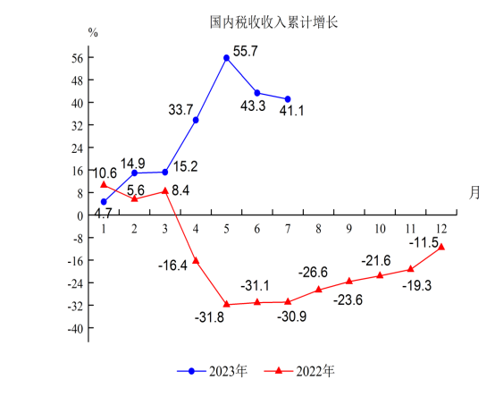 5.國內稅收收入71.62億元,增長41.1%,比1-6月回落2.2個百分點,總量居第5位,增速居第2位。