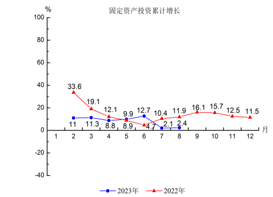 2.投資領域承壓明顯。一是固定資產投資保持正增長壓力大。1-8月全縣固定資產投資增長2.4%,比上半年回落10.3個百分點。二是建筑和安裝工程投資增速放緩。1-8月全縣建筑和安裝工程投資增長10.9%,為2月以來最低增長點。三是房地產開發投資持續在負增長區間。1-8月全縣房地產開發投資下降24.8%,比上半年回落7.1個百分點。