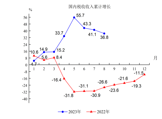 5.國內稅收收入80.04億元,增長36.8%,比1-7月回落4.3個百分點,總量居第5位,增速居第2位。