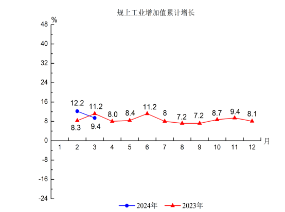 4.規模以上工業總產值增長5.8%,比2023年回落0.4個百分點;總量、增速均居第3位。規模以上工業增加值增長9.4%,比2023年提高1.3個百分點;總量、增速均居第3位。