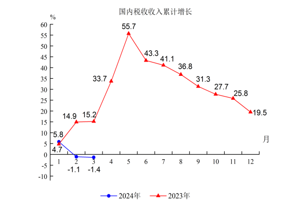 8.國內稅收收入30.22億元,下降1.4%,降幅比2023年擴大20.9個百分點;總量居第5位,增速居第3位。