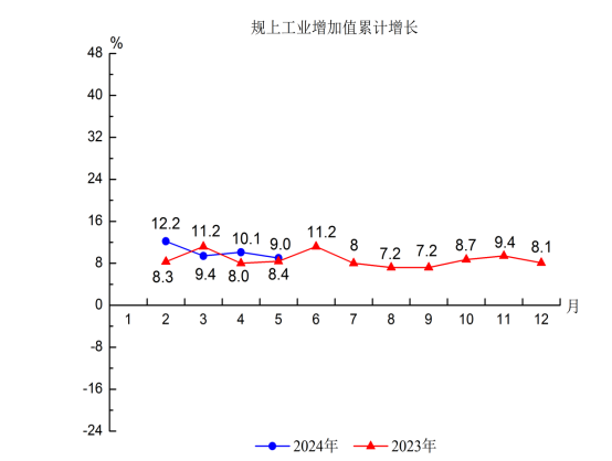 1.規(guī)模以上工業(yè)總產(chǎn)值增長(zhǎng)6%,比1-4月回落0.8個(gè)百分點(diǎn),總量居第4位,增速居第3位。規(guī)模以上工業(yè)增加值增長(zhǎng)9%,比1-4月回落1.1個(gè)百分點(diǎn),總量、增速均居第3位。