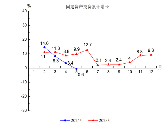 2.部分領(lǐng)域投資增長(zhǎng)乏力。1-5月基礎(chǔ)設(shè)施和建安投資降幅擴(kuò)大,分別下降8.1%、5.8%,降幅比1-4月擴(kuò)大7.7個(gè)、3.1個(gè)百分點(diǎn)。