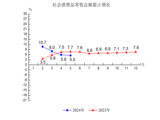 3.社會(huì)消費(fèi)品零售總額150.87億元,增長(zhǎng)5.5%,比1-4月回落0.4個(gè)百分點(diǎn),總量居第3位,增速居第1位。