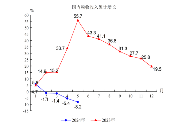 5.國(guó)內(nèi)稅收收入47.58億元,下降8.2%,降幅比1-4月擴(kuò)大2.8個(gè)百分點(diǎn),總量居第5位,增速居第4位。
