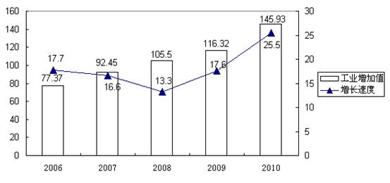 2010年,全縣完成工業增加值145.93億元,增長25.5%,對GDP的貢獻率達77.6%,拉動GDP增長12.1個百分點。其中規模以上工業增加值114.41億元,增長30.2%。規模以上輕、重工業增加值分別為45.87億元和68.54億元,分別增長29.7%和30.5%;輕、重工業增加值之比由上年的39.1:60.9調整為40.1:59.9。