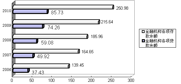 表10:2006-2010年金融機構人民幣各項存、貸款余額
