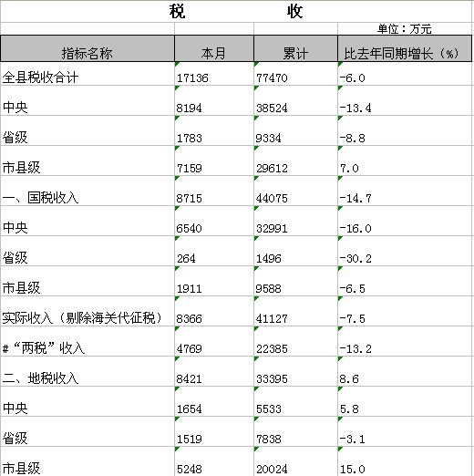 當前位置:首頁 > 縣政府工作部門 > 縣統計局 > 統計研究 > 統計數據 > 統計月報