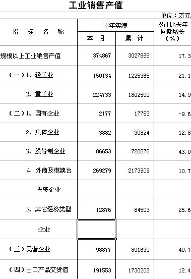 當前位置:首頁 > 縣政府工作部門 > 縣統計局 > 統計研究 > 統計數據 > 統計月報