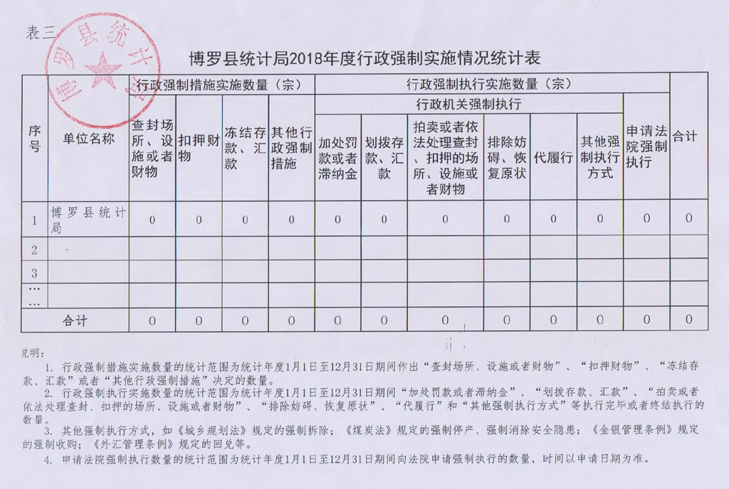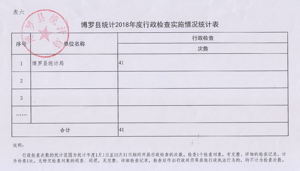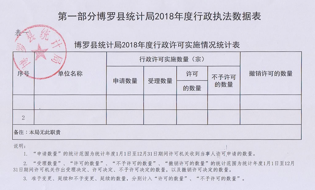 (博羅縣統計局)2018年年度行政執法數據表及情況說明
