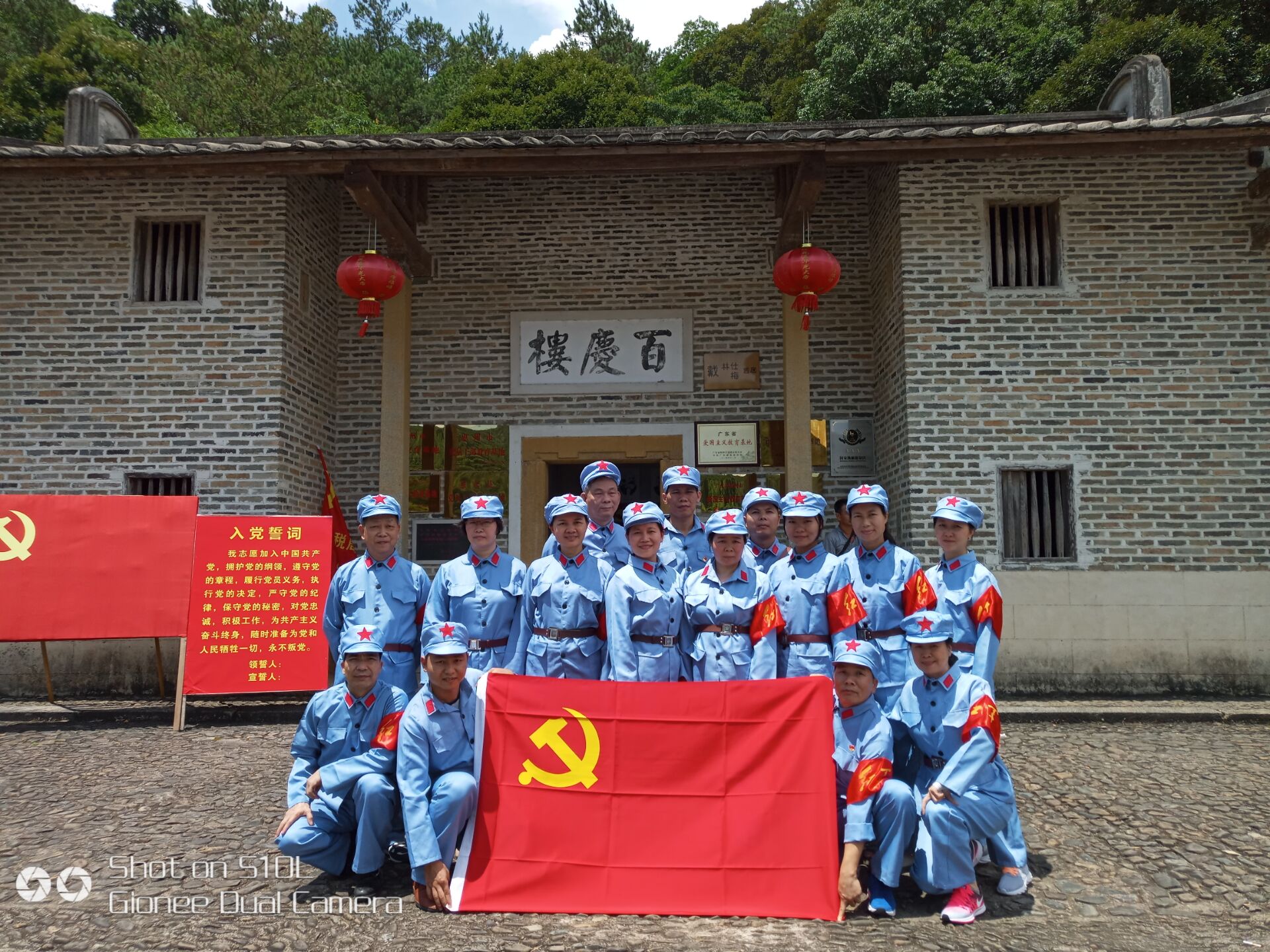 (革命老區(qū)百慶樓前合影)