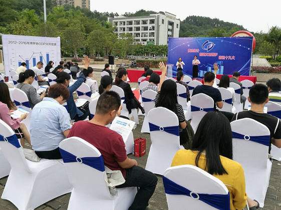 10月19日上午,縣統(tǒng)計(jì)局在東山公園北廣場(chǎng)舉行了以“依法統(tǒng)計(jì)·創(chuàng)建文明博羅·喜迎十九大”為主題的宣傳活動(dòng)。活動(dòng)包含了兩部分內(nèi)容,一是博羅縣十八大經(jīng)濟(jì)社會(huì)發(fā)展成就展覽,二是有獎(jiǎng)問答。活動(dòng)由縣統(tǒng)計(jì)局林艷云副局長(zhǎng)主持,縣統(tǒng)計(jì)局全體干部職工及18個(gè)鄉(xiāng)鎮(zhèn)(管委會(huì))統(tǒng)計(jì)員共約70人參加了本次活動(dòng)。簡(jiǎn)明精致的圖表展板和熱鬧的場(chǎng)面吸引了眾多居民紛紛駐足觀看,取得了良好的宣傳效果。