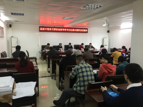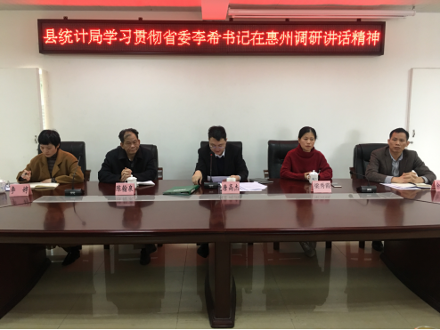 12月18日,縣統計局召開了學習貫徹省委李希書記在惠州調研講話精神會議,會議由局黨組書記、局長唐高杰同志主持,全局干部職工及經普辦全體工作人員共30多人參加會議。