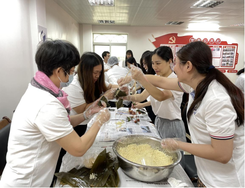 包粽子是慶祝端午必不可少的一環。現場還舉行了趣味互動—包粽子活動。會包粽子的比賽包,不會包的現場學,大家興味盎然、熱情高漲,歡聲笑語中,一個個形狀或規則或不規則的粽子呈現出濃濃的節日氣氛。
