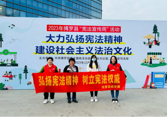 為全面貫徹黨的二十大精神,深入學習宣傳貫徹習近平法治思想,強化憲法意識,弘揚憲法精神,加強憲法、新行政復議法、統計法律法規等學習宣傳,進一步提高公民的法治素養,12月4日,博羅縣統計局結合國家憲法日暨憲法宣傳周的宣傳工作要求,開展“大力弘揚憲法精神,建設社會主義法治文化”為主題的宣傳教育活動。
